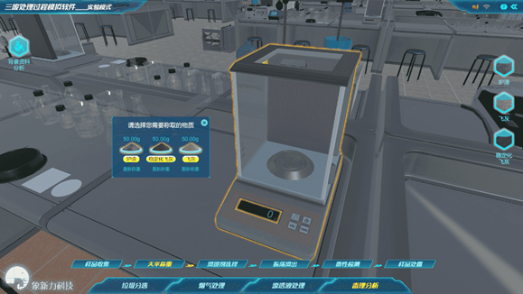 烟气和渗滤液处理工艺流程搭建:仿真系统通过模拟固体废物焚烧过程中产生的烟气以及渗滤液的组分,引导学生以不同特点的烟气和渗滤液为初始参数进行工艺流程构建。